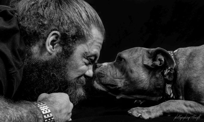 Jim Brakewood Jr. might look like kind of a scary dude. At 6’2”, loaded with muscles, long, wild hair and a beard to match, he cuts a pretty imposing figure. It’s as if a Viking decided he wasn’t ready for Valhalla just yet and decided to pay Instagram a visit instead. He has a soft spot for dogs, though. In particular, his Staffordshire Bull Terrier, Amora. Jim has seen war. In two tours in Iraq, he has been in battle, he has been wounded, and he has lost friends. During …