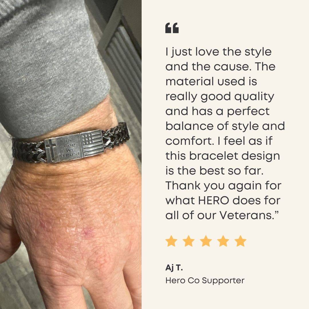 A bold declaration of faith and freedom. Now you can wear this powerful piece on your wrist while helping bring hope and healing to veterans through service dogs.